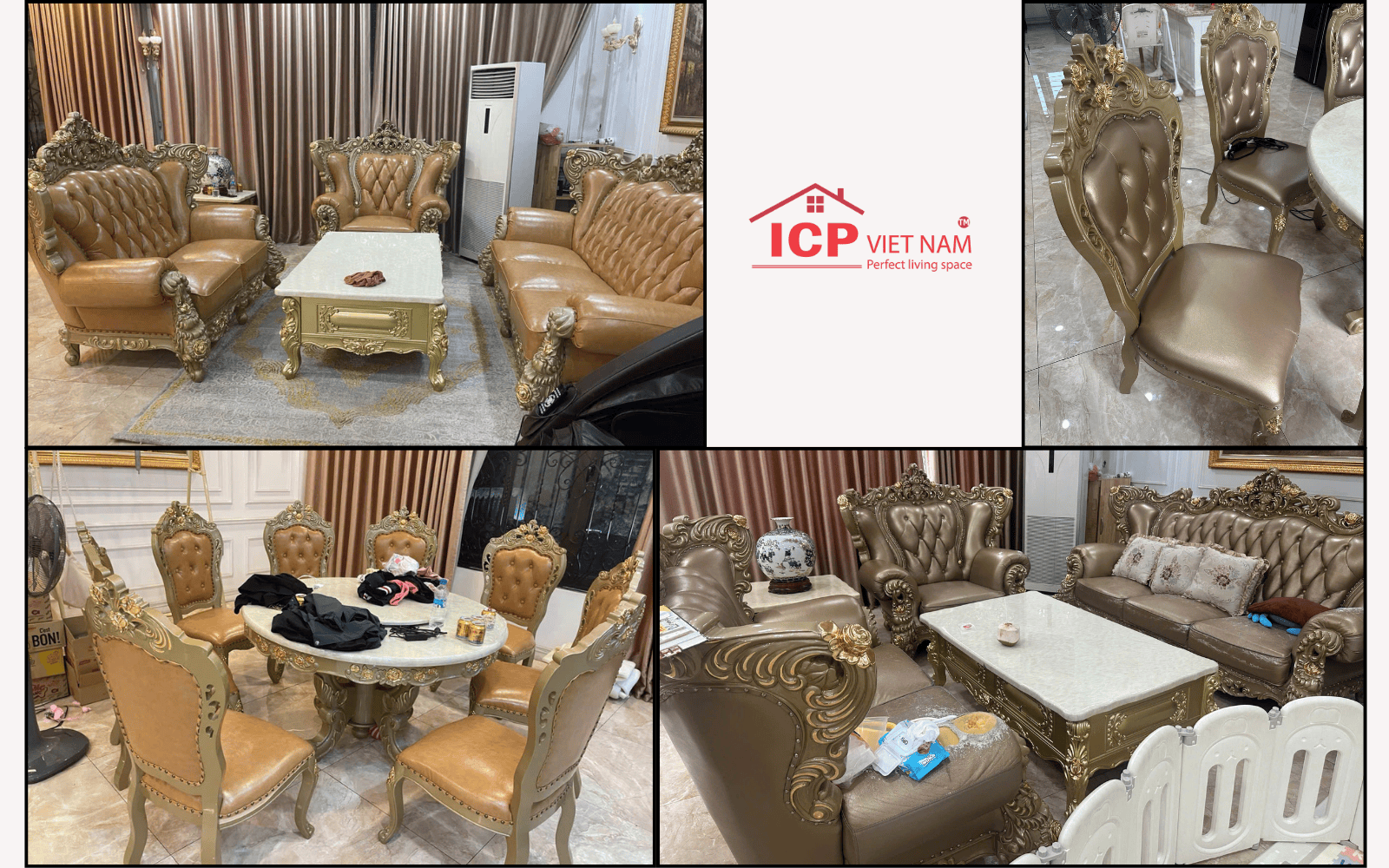 Thi công bọc lại : 1 bộ sofa tân cổ điển 123, 8 ghế ăn